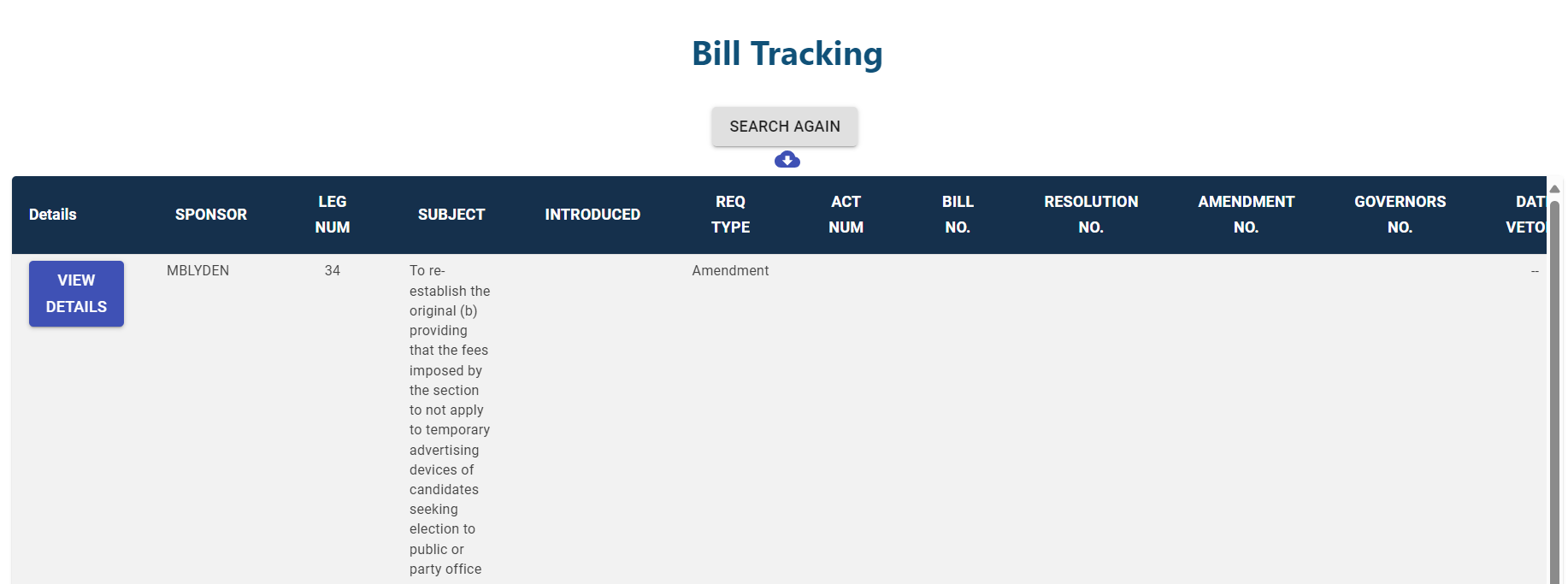 Bill Summary: Increases fees for various categories of advertising devices, abolishes the exemptions from permit fees for candidates seeking elective office and bans the use of digital billboards --Bill No. 32-0059